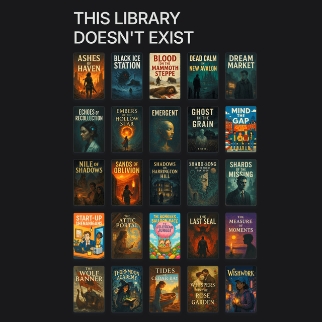 This Library doesnt exist is a collection of books generated by AI. from a 45,000 word fantasy epic to a zaney childrens adventure, the library contains a wide range of genres and styles.