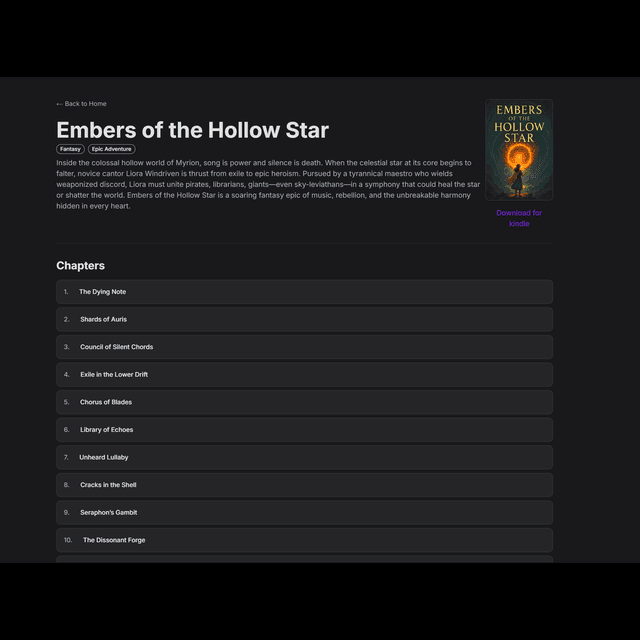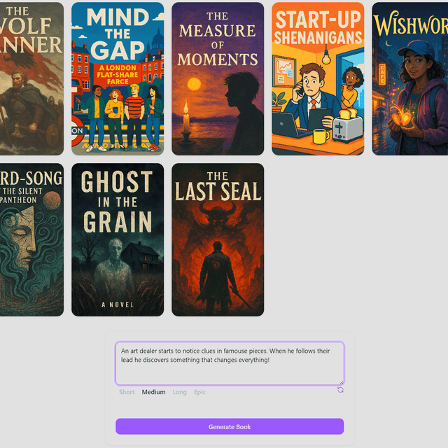 The site is split into two parts. A local app that generates the books, and a public site that displays them. The generation is almost entirely handled by AI. The only human input is the initial prompt, which is suggested by AI but can be edited. After that a reasoning model is used to determine the structure of the book, and then then image generation makes the cover and a regular LLM is used to write the chapters. (cursor was also used in the creation of this project)